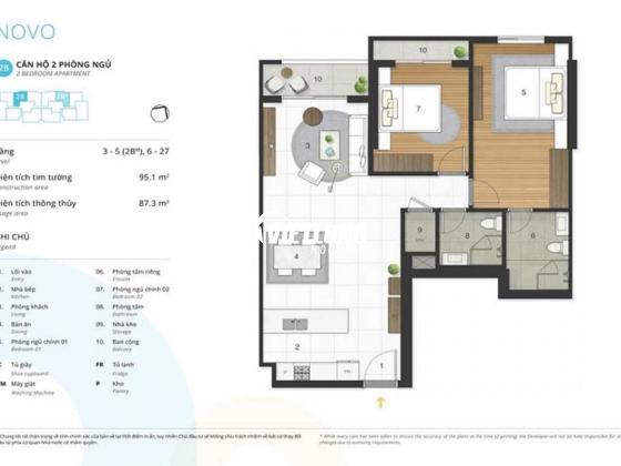 Căn hộ có diện tích 87.2m2, 02 phòng ngủ, 02 phòng tắm, nội thất xịn.